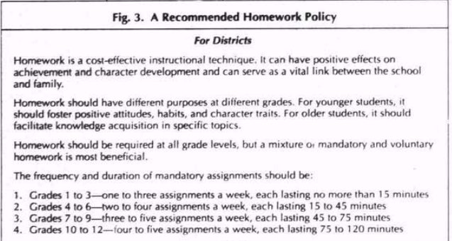 - Our data indicate that it is not necessary to assign huge quantities of homework, assigning more than 70 minutes of homework per day does not seem very efficient.